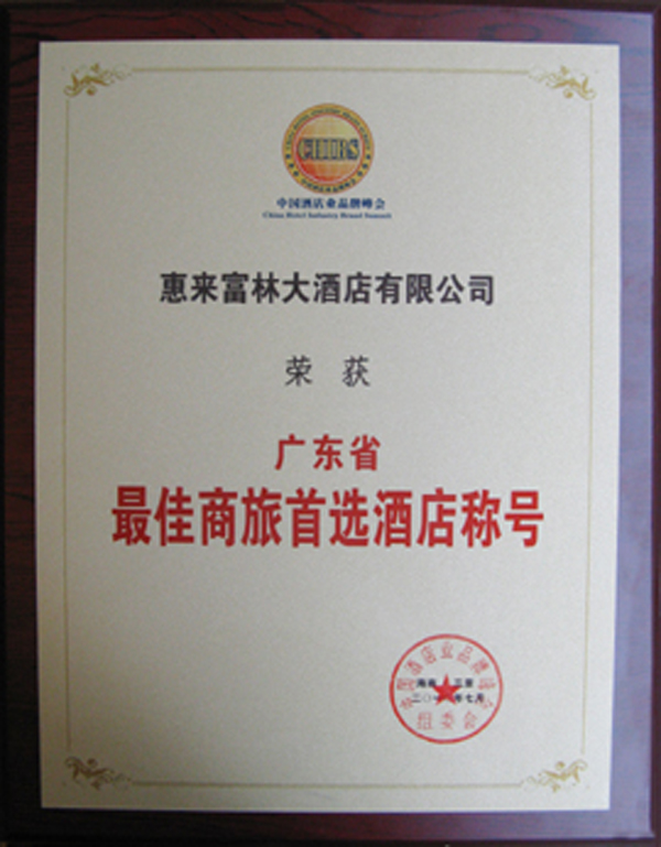 2010年7月荣获“广东省最佳商旅首选酒店”称号