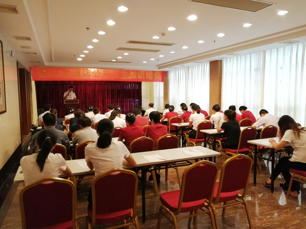 为提高企业的服务质量,酒店于2019年8月2日,邀请卫健局老师对员工进行公共卫生知识培训!