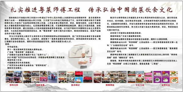 陈汉宁先生从事烹饪事业30多年,以粤菜传承和发展为己任,积极推广弘扬粤菜文化,自身潜心研究粤菜烹饪技巧,不断学习和提升,2018至2019年,陈汉宁先生先后申报并成立了“陈汉宁潮菜师傅大师工作室”、“广东省粤菜师傅大师工作室”、“国家级陈汉宁技能大师工作室”以及惠来县“潮菜师傅”培训基地,工作室项目单位设在富林大酒店,多年来致力于把工作室打造成为粤菜传承、研发、饮食文化展示的平台。